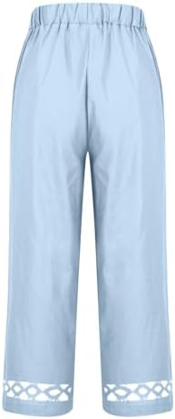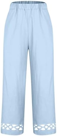 LRMQS Cropped Linen Pants Women Elastic Waist Beach Casual Spring Summer Cotton Trousers Comfy Lounge Loose Gauze Outfits