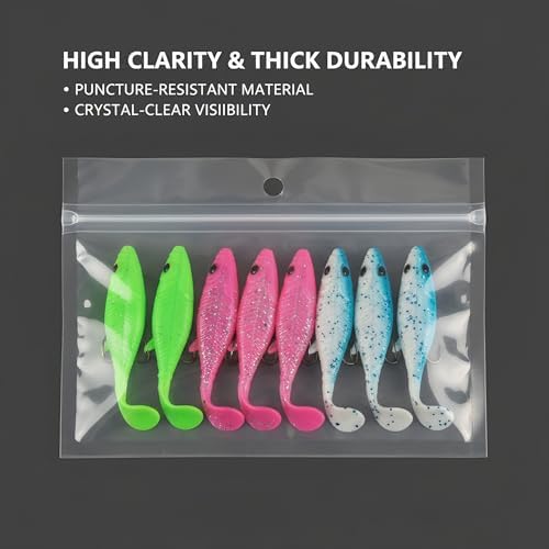 100 Pack Soft Plastic Baits Bags | Heavy-Duty Clear Lock Zipper Packaging Bags - Leakproof Double-Sealed Zipper Storage for Soft Plastic Lures & Fishing Gear | Multiple Sizes (7.5"x5.5")