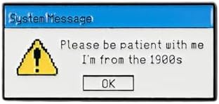 Please Be Patient With Me I’m From 1900s System Message Pop Up Window Enamel Pin, Funny Tech Humor Badge Brooch, Retro Computer 90s Pin Brooch, Computer Joke Lapel Badges For IT Programmer Coworker, Sarcastic Office Humor Gift, Born In The 1900s Accessory