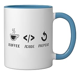 COFFEE CODE REPEAT. Fun meme for your favorite developer who codes all day! Whether you're a professional front-end, backend, full-stack, software, or UI/UX developer, you know how easy it is to obsess over codes and programming languages. I TURN COFFEE INTO CODE. Stay caffeinated! Great for a computer programmer, coder, anyone into web development. Click on the brand name for more funny coding memes. 11-ounce ceramic mug is dishwasher and microwave-safe, lead and BPA free Features glossy finish with accent colors on interior, handle, and rim of two-tone designs
