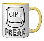 CTRL Freak Funny Computer Control Pun Geek Tech Humor Quote Ceramic Mug, Yellow/White