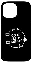 Code Sleep Repeat Funny Saying Programmer Coding Life Cycle Case for iPhone 13 Pro Max