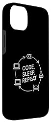 Code Sleep Repeat Funny Saying Programmer Coding Life Cycle Case for iPhone 14 Plus