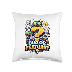 Bug or Feature Funny Programmer Developer Code Humor Throw Pillow