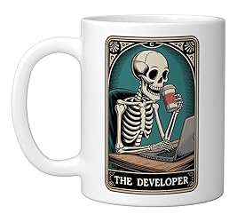 The Developer Tarot Card Programmer Software Engineer Coding design for web developer, software engineer and programmmers who loves writing code and have tech humor. For programmer, sys admin and any computer science student geek. Funny software engineer design for developer and computer experts. For long coding nights, at software development job during computer engineering for coding nerds and coder. 11-ounce ceramic mug is dishwasher and microwave-safe, lead and BPA free Features glossy finish with accent colors on interior, handle, and rim of two-tone designs