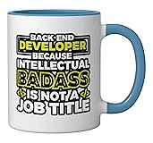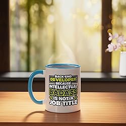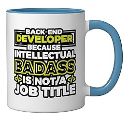 Awesome design for a backend developer, a professional who is responsible for creating, maintaining, testing, and debugging the entire back end of an application or system. Would also make a funny graduation gift for programming students. Expressing back developers' humor, this would make a cool outfit for men or women to wear at a programming school, college, or in public to show love & appreciation for the job. 11-ounce ceramic mug is dishwasher and microwave-safe, lead and BPA free Features glossy finish with accent colors on interior, handle, and rim of two-tone designs