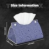 - 【Stylish and functional tissue box holder designed for home, car, or office use】【Combines practicality with decorative flair.】Product DetailsProduct Type: Tissue Box HolderMaterial: PVCDimensions: 4.9" L x 7.9" W x 4.5" HCompatible With: Standard rectangular tissue boxesDesign Features: Decorative stitching, smooth rounded edges, top opening for one-handed dispensingPortability: Integrated carry handle for convenient transport or hangingUse Scenarios: Living room, bathroom, bedroom, car dashboard, office desk, dining tableCare Instructions: Wipe clean with a damp cloth; do not submerge in water
