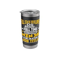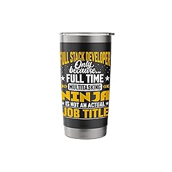 This Design Shows the Text "Full Stack Developer Only Because Full-Time Multitasking Ninja Is Not an Actual Job Title". This Job Title Design Is the Perfect Gift Idea for Every Full Stack Developer. Perfect to Wear in Your Office or Working Place & Show How You Love & Dedicated to Your Job. Dual wall insulated: keeps beverages hot or cold Stainless Steel, BPA Free Leak proof lid with clear slider