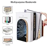 - This beech wood and iron bookend set is a perfect blend of functionality and style, designed to elevate your book storage experience. Made of thick beech wood, it boasts a firm structure that provides stable support for your books, while the iron components reinforce its sturdiness for long-term use. The large-sized pair fits seamlessly into study rooms, offices, libraries and bookshelves, keeping your book collection in order and easy to access. With its space-saving design, the bookend allows you to adjust according to the thickness of your books, maximizing storage efficiency and keeping your space neat. Unlike ordinary bookends, its wood-iron combination brings a natural, warm touch to your environment, creating a cozy and relaxed atmosphere for reading or working, far from the coldness of all-metal accessories.