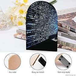 Programmer Programming Code Bookend for Shelves Non-Skid Book Holder Modern Heavy Duty Bookend Stopper Metal Base Wood Book End Books Shelf Holder Home Decorative 1pair 6.7x3.9x4.7