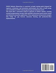 - FANUC Robotics Masterclass is a practical, in-depth training guide designed for engineers, technicians, and automation professionals who want to build strong, real-world skills in FANUC robot programming and industrial control.This book takes a structured, hands-on approach to FANUC robotics, covering essential programming concepts while gradually advancing toward system control and industrial automation applications. Clear explanations and practical examples help bridge the gap between classroom learning and production-floor implementation.Inside this Book, you will learn:Core FANUC robot programming concepts and motion controlRobot setup, configuration, and system initializationI/O signals, digital and analog control, and communication basicsProgram structure, logic flow, and safe operation practicesIntegration of FANUC robots into industrial automation systemsPractices for reliability, efficiency, and production environmentsDesigned as both a learning resource and a long-term reference, this book supports skill development for real manufacturing scenarios, including assembly, material handling, and automated processes.Whether you are advancing your automation career, supporting industrial operations, or strengthening your technical foundation, FANUC Robotics Masterclass provides comprehensive training to help you program, control, and integrate FANUC robots with confidence.