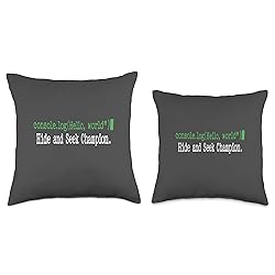 This design features the classic "Hello, world" code snippet with a missing semicolon, captioned "Hide and Seek Champion." It's a perfect inside joke for any coder who knows the pain of hunting down that one missing character that breaks everything. Great for software engineers, web developers, computer science students, and anyone in the tech industry. Perfect for hackathons, the office, or while working from home. A fun way to show off your geeky side and love for programming. 100% spun-polyester fabric Double-sided print Filled with 100% polyester and sewn closed Individually cut and sewn by hand Spot clean/dry clean only