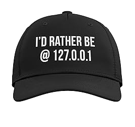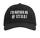 Great for everyone in Tech Support. The perfect Design for your friend who's working in IT as a Sysadmin and is a Linux fan. It reads: I'd rather be @ 127.0.0.1. This funny Computer Geek design is perfect for every System Administrator, computer nerd, and helpdesk worker. Great for everyone working with Unix and Linux. Classic five-panel structured baseball hat with high-profile crown Adjustable fit; one size fits most adults