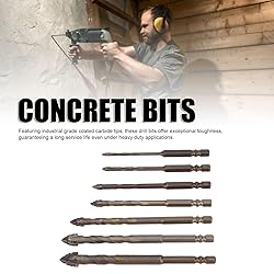 - Spec: Item Type: Masonry Drill Bit Set Material: Carbide, Ti Coating Shank Type: Hex Drill Type: Ceramic and Glass Drill Bit Diameter: Size: Approx. 3mm / 0.12in Size: Approx. 4mm / 0.16in Size: Approx. 5mm / 0.2in Size: Approx. 6mm / 0.24in Size: Approx. 8mm / 0.31in Size: Approx. 10mm / 0.39in Size: Approx. 12mm / 0.47in How to Use: Directly install and use. Package List: 7 x Drill Bits 1. VARIOUS SIZES AVAILABLE: This brick masonry drill bits set includes a range of sizes from 3mm to 12mm, catering to diverse drilling needs. Designed for use on glass, tile, hard plastics, cement, granite, and concrete, this set ensures you have the right tool for any material you encounter. 2. INDUSTRIAL GRADE TOUGHNESS: Featuring industrial grade coated carbide tips, these drill bits offer exceptional toughness, guaranteeing a long service life even under heavy duty applications. 3. IMPROVED CUTTING SPEED: These carbide drill bits enhances cutting speed, allowing for efficient opening creation in various materials. Whether it's ceramic, granite, tile, stone, wood, plastic, or concrete walls, this set delivers excellent results. 4. ENHANCED DURABILITY: The ti coating not only increases the durability of the drill bits but also reduces heat buildup. This ensures smoother drilling, preventing damage to the materials, allowing you to work with confidence. 5. COMPATIBLE WITH POWER DRILLS: These drill bits are compatible with both hand drills and electric drills, providing versatility for various drilling tasks around construction and renovation sites. Whatever the job requires, this set adapts to your needs seamlessly.