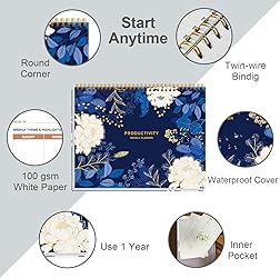 BOOST YOUR PRODUCTIVITY - This undated weekly productivity planner notepad focus on the important work and get organized. Weekly to do list notepad allowing you to categorize and prioritize your tasks effectively. Whether you're a small business owner, project manager, freelancer, academicians or master multitasker, the weekly to do list pad will be your new favorite daily office productivity tool. UNDATED WEEKLY PLANNER - This weekly planner start any time with 54 weeks, Weekly planner pad has plenty of space to write your goal plan, work plan, student plan or personal schedule, keep track of priorities, and write notes on the back. This versatile planner allows you to stay organized in 2025, 2026, or even as far ahead as 2027! FEATURES - Weekly Theme and Highlights for at-a-glance planning Top 3 Priorities for the week 6 Focus Areas to segment and list tasks for goals, projects, or clients Daily Tracker for healthy habit-tracking and routine-tracking. HIGH QUALITY - This weekly desk planner size of 8.5" x 11", it offers ample space for writing and planning your tasks, just the perfectly size to fit in your backpack. Is used to high quality 100gsm pure white paper, elastic band and a back pocket for extra space. FUNDTIONAL DESIGN - This weekly deskpad planner will completely change how you structure your work: by segmenting your tasks by area and tracking the most important details, you'll feel less scattered and more organized.We believe in helping you be fulfilled with your life and productive at the same time by using a weekly to do list notepad. The planner paper is made of FSC-certified.