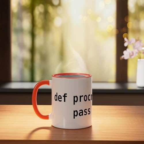Funny Python Programming Design - def procrastinate pass Ceramic Mug, Orange/White