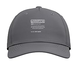Programmer - This design showing a funny definition of a programmer is for men and women with a sense of humor and are into programming. A gift for programmers who finds joy in debugging codes in phyton, C++, and Java programming language. This programming graphic is for software engineers with a sense of humor. A programming present for computer programmers who are knowledgeable about Ruby, CSS, and Pascal language. Perfect programming apparel for proud programmers out there. Classic five-panel structured baseball hat with high-profile crown Adjustable fit; one size fits most adults