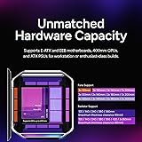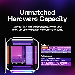 FLAGSHIP COSMOS DESIGN Premium curved aluminum frame with full tempered glass panels preserves the iconic COSMOS look while integrated ARGB underglow elevates your build into a true showcase EXTREME HARDWARE COMPATIBILITY Supports E-ATX and EEB motherboards, GPUs up to 400mm, and PSUs up to 240mm with 53mm rear cable clearance and removable dust filters FREEFORM 2.0 ROTATABLE LAYOUT All internal components rotate left or right, allowing custom orientations for airflow optimization, desk placement, and visual presentation MODULAR SLIDING MOTHERBOARD TRAY Easily switch between air and liquid cooling layouts. Adjust GPU distance to improve airflow or highlight your graphics card NEXT-GEN FRONT I/O Equipped with 4× USB-A 5Gbps ports and 2× USB-C 20Gbps ports for ultra-fast data transfer and modern devices