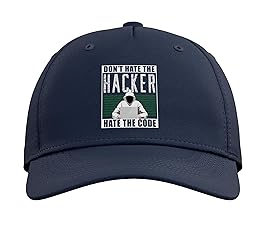 Don't hate the hacker - hate the code. Coding Design perfect for any programmer who like working with their computer and study computer science. Perfect for programming nerds and geeks as a Design idea for hacking perfect for hackers and crackers. Classic five-panel structured baseball hat with high-profile crown Adjustable fit; one size fits most adults