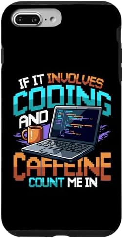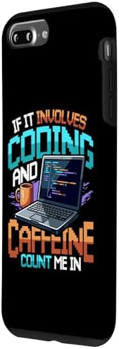 - This computer science themed design features a pixel art laptop and coffee mug with the quote 'IF IT INVOLVES CODING AND CAFFEINE COUNT ME IN'. Perfect for every software engineer, web developer, and tech geek.