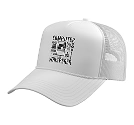 Computer Whisperer Tech Supports Programmer Coder. Still looking for programming and coding designs for men and women? This is perfect for tech supports, computer technicians and computer whisperers who is called to fix computers or laptops. Five-panel trucker hat featuring structured foam front, mesh back, and high-profile crown Adjustable fit; one size fits most adults
