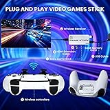 20K+ Classic Games Instantly Ready - This retro gaming console ships with a 64 GB TF card pre-loaded with 20,000+ legendary titles and 23 emulators. Plug the stick into any TV HDMI port, power it on and start playing—no Wi-Fi, accounts or updates ever needed. (SELECT + START = main menu.) Cinematic 4K HDMI Output - Upscale every pixel to 1080P/4K via the included extension cable. Compatible with HDTV, monitor or projector, the stick auto-detects the best resolution so you see every sprite in razor-sharp clarity. Dual 2.4G Wireless Controllers | Lag-Free Duels - Includes 2 upgraded 2.4GHz controllers with 40ft range and near-zero latency. Perfect for Classic games – no wires, no interference, just seamless 2-player action! Plug & Play in 60 Seconds - Connect HDMI to TV → 2. Insert TF card → 3. Power on → GAME ON! No setups or updates. (Controllers need 4xAA batteries – not included) The Ultimate Gift for Gamers 8-80 - 80s/90s kids: Reclaim your childhood! Parents: Bond over Pac-Man with teens. Ideal for Christmas, birthdays, or Father’s Day.