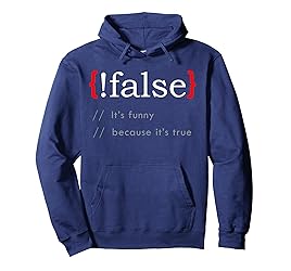 - False It’s Funny Because It's True - This design showing a programming code is for programmers who code and debug programs. A gift for programmers looking for programmer stickers to wear while debugging codes in phyton, C++, and Java programming language. Python programming for beginners learn the basics of python & learning scientific programming python. A present for men and women who code programs and applications with their computers. A programming outfit for software engineers and computer programmers This False Funny Because True Programming Learn Python C# Java item is designed by Learn Javascript Python C# C++ Programming Books.