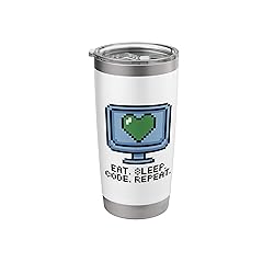 - Features a nostalgic 8-bit pixel art design of a computer monitor with a green heart and the classic "Eat. Sleep. Code. Repeat." motto. Perfect for software engineers, web developers, and computer science students who live the coding lifestyle.