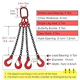 Heavy Duty Lifting Chains with 4 Hooks - 4 Point Lift Harness for Moving Equipment, High Strength Slings (11023 Lbs/5 T, 118in/3m/9.8ft) - Cargo Handling Accessory