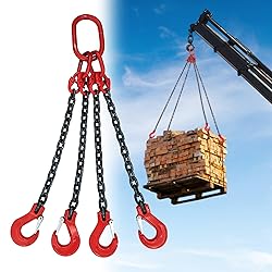 Ensure Safe Use: Hang the object centrally on the Hook. Avoid hanging from the edge to prevent slippage. The Chain should remain untwisted, upright, and free from tangling for optimal performance. Perfect for enhancing your Home Décor or organizing your Space, this product is designed for durability and ease of use. Ideal for both indoor and outdoor applications. High-Quality Standard Link Size Chains are heat-treated for enhanced strength and durability. Equipped with grab hooks on both ends, these Chains ensure a secure connection for various applications. Ideal for lifting and towing, they are designed to withstand heavy use without breaking easily, making them a reliable choice for your needs. Heavy-Duty Chain Slings - Engineered for durability and strength, our chain slings are rigorously tested and tagged with their rated capacity for reliable lifting. Ideal for construction, rigging, and industrial applications. Please ensure to operate within the rated limits for optimal safety and performance. Experience efficient lifting with our premium quality slings! Versatile Use --- Our Chain Slings are perfect for a wide range of lifting and moving tasks in industries like Manufacturing, Construction, Mining, and Shipping. Ideal for safely lifting heavy items such as Timber, Steel Beams, and Car Engines, these slings are essential tools for your industrial and construction needs. Trust in their strength and reliability. Heavy Duty Chain Sling --- Constructed from G80 Manganese Steel, this Chain Sling features Powder-Coated Alloy Steel Rings and Hooks. Designed for durability, it offers Rust and Abrasion Resistance while withstanding High Temperatures. Ideal for Heavy Lifting Applications, this reliable tool ensures safety and efficiency in various tasks. Perfect for industrial and construction use.