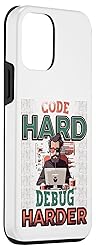 Coding themed programmer design for software developers and all programming lovers. Code Hard Debug Harder. Two-part protective case made from a premium scratch-resistant polycarbonate shell and shock absorbent TPU liner protects against drops Printed in the USA Easy installation