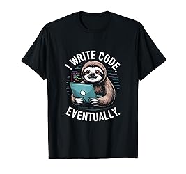 • Ideal for relaxed programmers, software developers, and students who relate to slow but steady progress. With a cute sloth holding a device and the phrase I WRITE CODE.. EVENTUALLY.