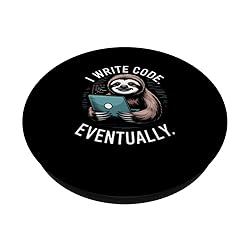 You love coding but you also love taking it slow, and this funny sloth coder theme captures that vibe with the text I WRITE CODE.. EVENTUALLY for every laid back programmer, software developer, or computer science student who debugs at their own pace. Show your sarcastic dev humor at work, in class, or during late night coding sessions when you know you will finish the feature eventually, with a lazy sloth holding a device and the phrase I Write Code Eventually. Adhesive backing attaches the PopGrip to your case or device. Will not stick to silicone,leather,waterproof,or highly textured cases. Works best with smooth,hard,plastic cases. Not compatible with wireless charging Printed top is swappable with other compatible PopGrip models. Just press flat,turn 90 degrees until you hear a click and remove to swap.