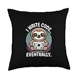 - Ideal for relaxed programmers, software developers, and students who relate to slow but steady progress. With a cute sloth holding a device and the phrase I WRITE CODE.. EVENTUALLY.