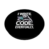 You love coding but you also love taking it slow, and this funny sloth coder theme captures that vibe with the text I WRITE CODE.. EVENTUALLY for every laid back programmer, software developer, or computer science student who debugs at their own pace. Show your sarcastic dev humor at work, in class, or during late night coding sessions when you know you will finish the feature eventually, with a lazy sloth holding a device and the phrase I Write Code Eventually. Adhesive backing attaches the PopGrip to your case or device. Will not stick to silicone,leather,waterproof,or highly textured cases. Works best with smooth,hard,plastic cases. Not compatible with wireless charging Printed top is swappable with other compatible PopGrip models. Just press flat,turn 90 degrees until you hear a click and remove to swap.