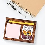 - This wooden self-stick note pad holder (6.7 x 4.9 x 0.6 inches) features a calm dog in a burning fire basket wearing a blue knit hat, paired with the ironic phrase: "IT'S FINE, IM FINE, EVERYTHING'S FINE." It captures modern workplace burnout and emotional masking with dark humor. Perfect for gifting to coworkers, therapists, or friends who say “I’m fine” while drowning in stress. Holds standard sticky notes securely on any desk.