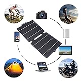 [High Efficiency Charging] The solar charger delivers impressive photovoltaic conversion efficiency ensuring and effective charging for smartphones tablets and other usb powered devices. its advanced technology maximizes sunlight absorption for reliable power even in low light conditions. [Compact Foldable Design] The innovative foldable construction allows for easy storage and transportation. this space saving design fits perfectly in backpacks or travel bags while providing full size solar panel performance when unfolded for immediate use. [ Protection] Equipped with a smart chip this solar charger safeguards your devices against overcharging over discharging and short circuits. enjoy worry free charging with built in safety features that extend battery life and ensure reliable power delivery. [Durable Outdoor Performance] Crafted from premium etfe and monocrystalline silicon materials this solar panel combines lightweight portability with rugged durability. it withstands harsh outdoor conditions while maintaining optimal performance making it ideal for camping hiking and travel adventures. [Universal Device Compatibility] Featuring both usb and type c ports this versatile solar charger works seamlessly with most electronic devices. stay connected anywhere with dual charging interfaces that accommodate various cables and power requirements for maximum convenience.