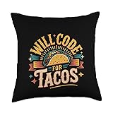 Will Code for Tacos Programmer Coder |- Throw Pillow