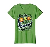 Features the clever tech humor text 'Delete problems ctrl happiness' that perfectly combines computer commands with life philosophy for digital natives Perfect for programmers, IT professionals, gamers, and tech enthusiasts who appreciate witty computer-inspired wordplay and keyboard shortcut humor Lightweight, Classic fit, Double-needle sleeve and bottom hem