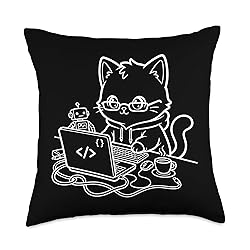 Coder Kawaii Cat Programmer Software Developer Throw Pillow