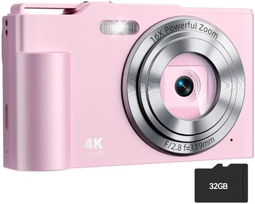 Digital Camera, FHD 4K Digital Point and Shoot Camera with 16X Zoom Anti Shake, 48MP Compact Small Camera with 32GB Card for Boys Girls Kids