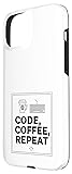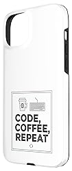 Minimalist coding design featuring the phrase “Code, Coffee, Repeat” with clean line icons for coffee and keyboard, appealing to programmers, coders, developers, and software engineering enthusiasts. Relevant for mom, dad, brother, sister, coworker, or friend in the tech space; works well for occasions like Christmas, Father’s Day, Mother’s Day, or Programmer Day. Two-part protective case made from a premium scratch-resistant polycarbonate shell and shock absorbent TPU liner protects against drops Printed in the USA Easy installation