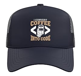Software Engineer Computer Programmer Programming Code. This I Convert Coffee Into Code is for a coffee drinker working as a software engineer. Perfect programming clothes for a computer expert who enjoys programming and is into software development. This programming design is for a programmer expert in data structures and algorithms. Perfect for a software developer into computer frameworks and software testing. Ideal for a computer programmer. Five-panel trucker hat featuring structured foam front, mesh back, and high-profile crown Adjustable fit; one size fits most adults