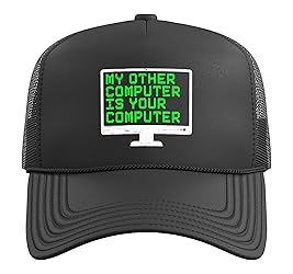 My Other Computer Is Your Computer - This is for computer hackers looking for hacker stuff to wear while phishing. A gifts for a professional game hacker who can bypass any cybersecurity. Ideal for hacker outfit to show your hacking knowledge. This hacking graphic is for programmers and pen testers doing some penetration test to prevent password attacks. A present for proud hackers who are experts in cybersecurity hacking. Impress everyone at the next hackathon wearing this hacker apparel. Five-panel trucker hat featuring structured foam front, mesh back, and high-profile crown Adjustable fit; one size fits most adults