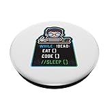 Software programmer motif for computer engineers who love coding. Great coding expert programming design. While ! Dead : Eat () Code () // Sleep (). Adhesive backing attaches the PopGrip to your case or device. Will not stick to silicone,leather,waterproof,or highly textured cases. Works best with smooth,hard,plastic cases. Not compatible with wireless charging Printed top is swappable with other compatible PopGrip models. Just press flat,turn 90 degrees until you hear a click and remove to swap.