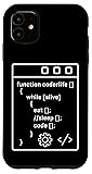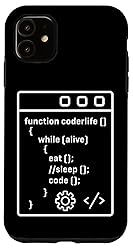 Funny programmer design styled like real code featuring “Function CoderLife()” and the lines While (Alive) { Eat(); //Sleep(); Code(); } in colorful coding text. Great gift idea for programmers, software developers, coders, computer science students, IT professionals, web developers, and tech geeks who love coding humor. Two-part protective case made from a premium scratch-resistant polycarbonate shell and shock absorbent TPU liner protects against drops Printed in the USA Easy installation