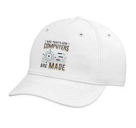 Funny computer themed motif for programmers, developers and gamers. Funny saying for computer nerds. And That´s How Computers Are Made. Classic five-panel structured baseball hat with high-profile crown Adjustable fit; one size fits most adults