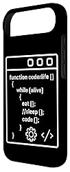 Funny programmer design styled like real code featuring “Function CoderLife()” and the lines While (Alive) { Eat(); //Sleep(); Code(); } in colorful coding text. Great gift idea for programmers, software developers, coders, computer science students, IT professionals, web developers, and tech geeks who love coding humor. Two-part protective case made from a premium scratch-resistant polycarbonate shell and shock absorbent TPU liner protects against drops Printed in the USA Easy installation