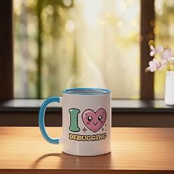 I love Debugging I heart Debugging 11-ounce ceramic mug is dishwasher and microwave-safe, lead and BPA free Features glossy finish with accent colors on interior, handle, and rim of two-tone designs
