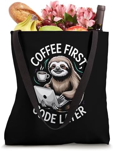 Coffee First Code Later Sloth Programming Tote Bag